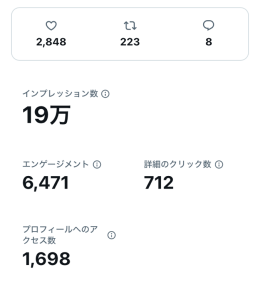 X(Twitter):平均5,000〜20,000インプレッション/1投稿